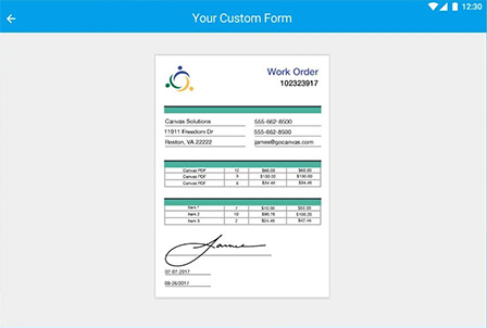 GoCanvas gives you the power to collect the information you need from customers and co-workers, and transform it into PDFs that reflect your brand. Now, you can display these PDFs on your Zonar tablet. Transform paperwork into customized mobile forms.