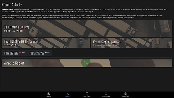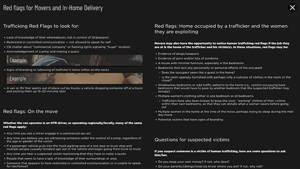 - Gives your drivers the tools to identify and report labor and sex trafficking.
