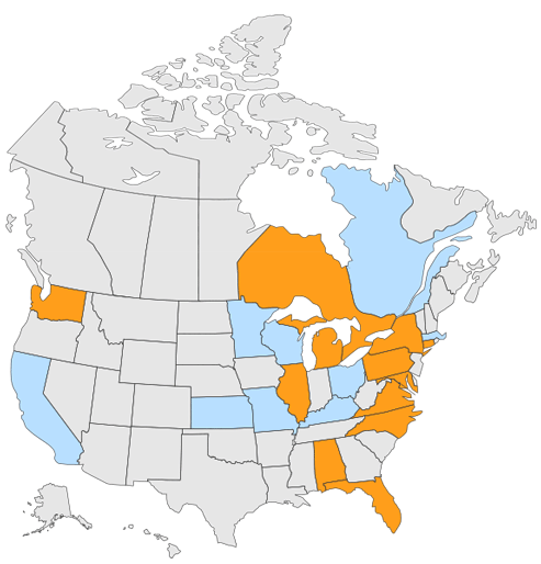 Connecticut Georgia Florida Illinois Maryland *New York Michigan North Carolina Pennsylvania Virginia Washington