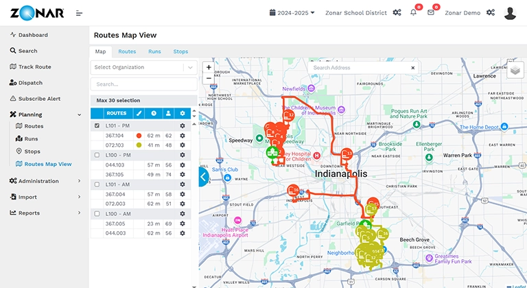 Zonar Bus Suite is a comprehensive routing ecosystem designed for school districts and bus contractors. This all-in-one platform includes tools for route planning, driver navigation, parent communication, and student ridership tracking.